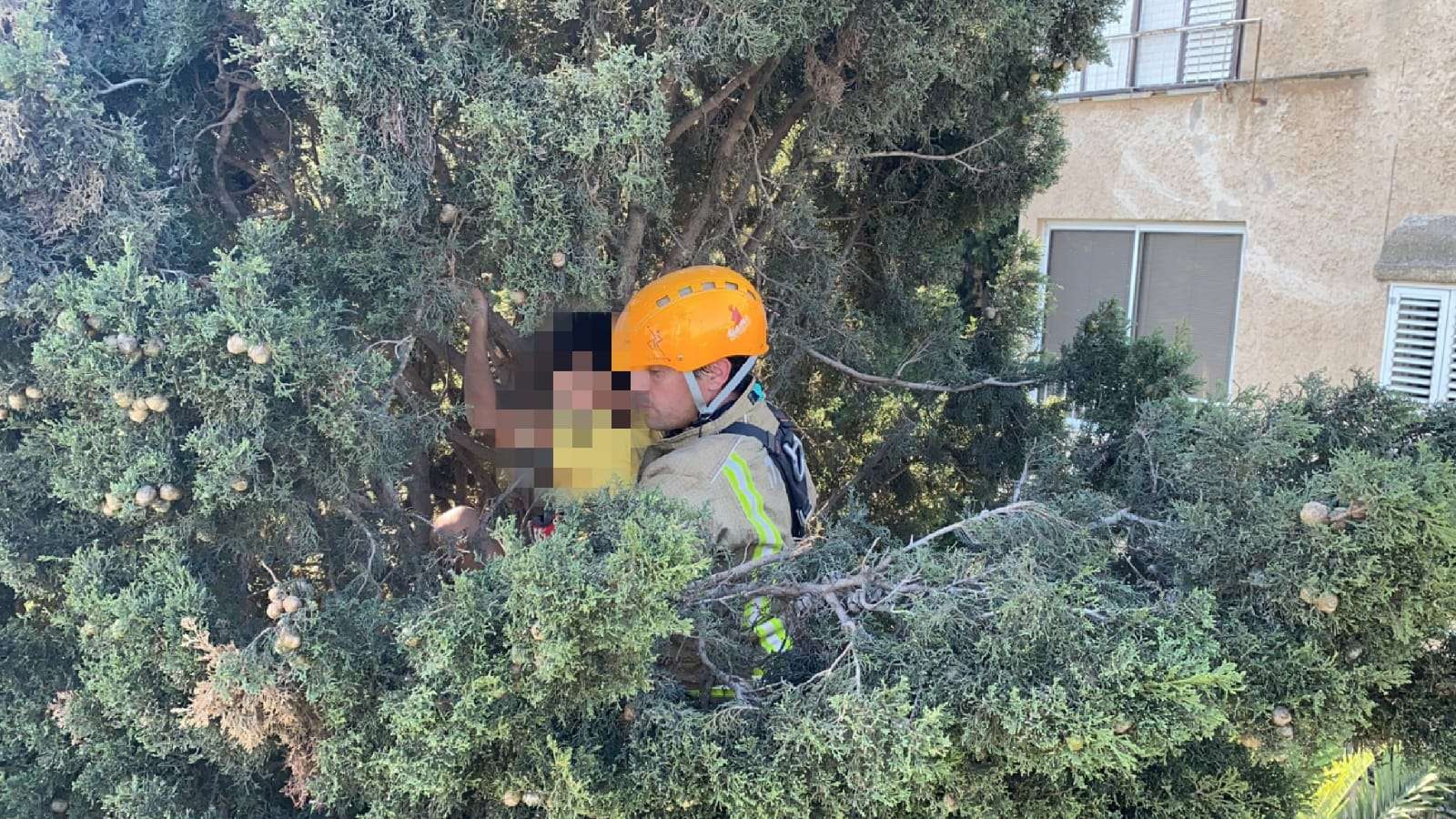 בן 10 מחיפה שטיפס על עץ חולץ בידי לוחמי האש