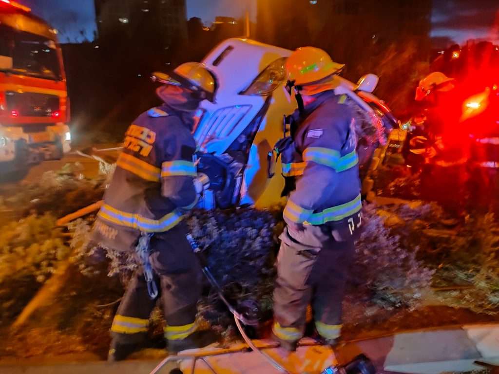 לוחמי האש חילצו נהג שנלכד ברכבו, בתאונת דרכים עצמית בחיפה. באותה תאונה נפגעו עוד שלושה מנוסעי הרכב.