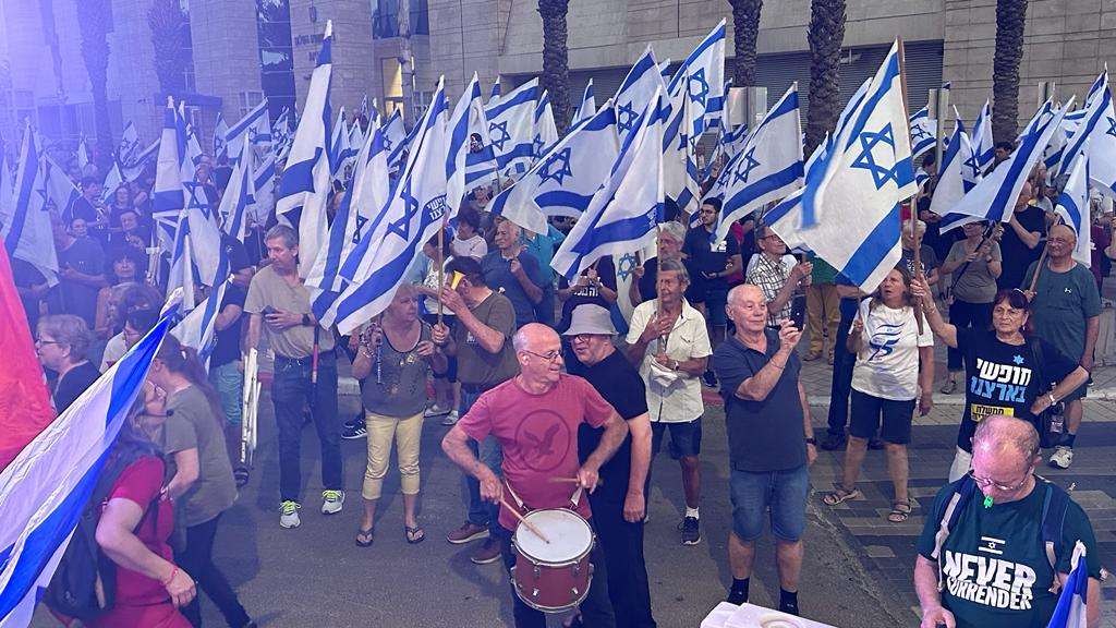 נחושים ונאבקים: בפעם ה-20 ברציפות, הפגינו במוצ”ש (1/7/23) אלפים מתושבי הקריות, כפר ביאליק, קיבוצי הגליל המערבי והמצפים באיזור. ההפגנה החלה במצעד מתופפים עם סירים ומחבתות, מאיזור הקריון אל מקום ההפגנה, במתחם בית המשפט בקריית ביאליק, שם חברו אל אלפי נושאי הדגלים, שקיבלו אותם בקריאות ד-מ-ו-ק-ר-ט-י ה, ד-מ-ו-ק-ר-ט-י-ה.