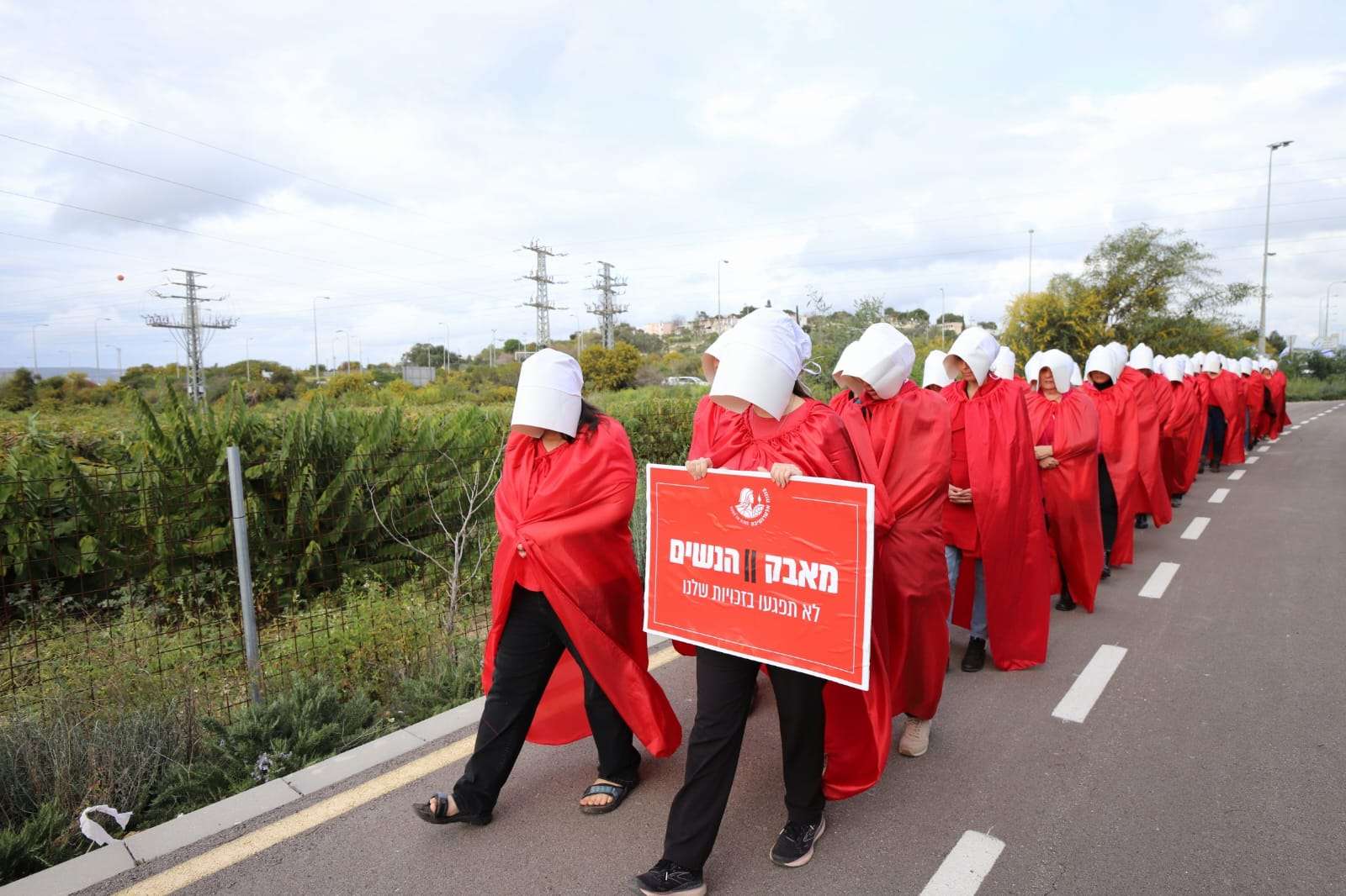 מוחים נגד ההפיכה המשפטית. מייצג הנשים " סיפורה של שפחה" מגיע גם לקריות. צילום: אמיר ירחי
