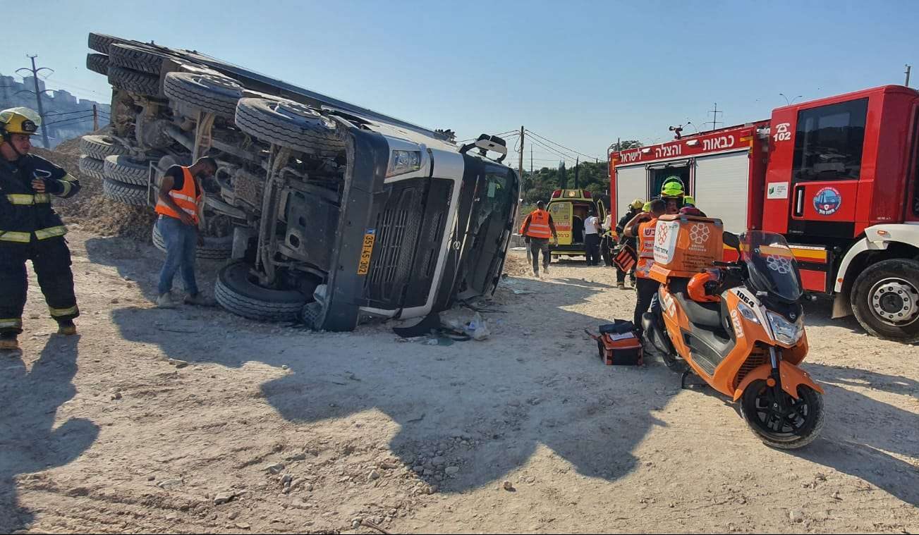 התאונה אירעה בשעות הצהריים, באתר בנייה ליד גשר פז, בכניסה לחיפה. המשאית התהפכה מסיבה לא ברורה והנהג נפצע. למקום הוזנקו צוותים של איחוד הצלה ומד”א, שטיפלו בנהג הפצוע.