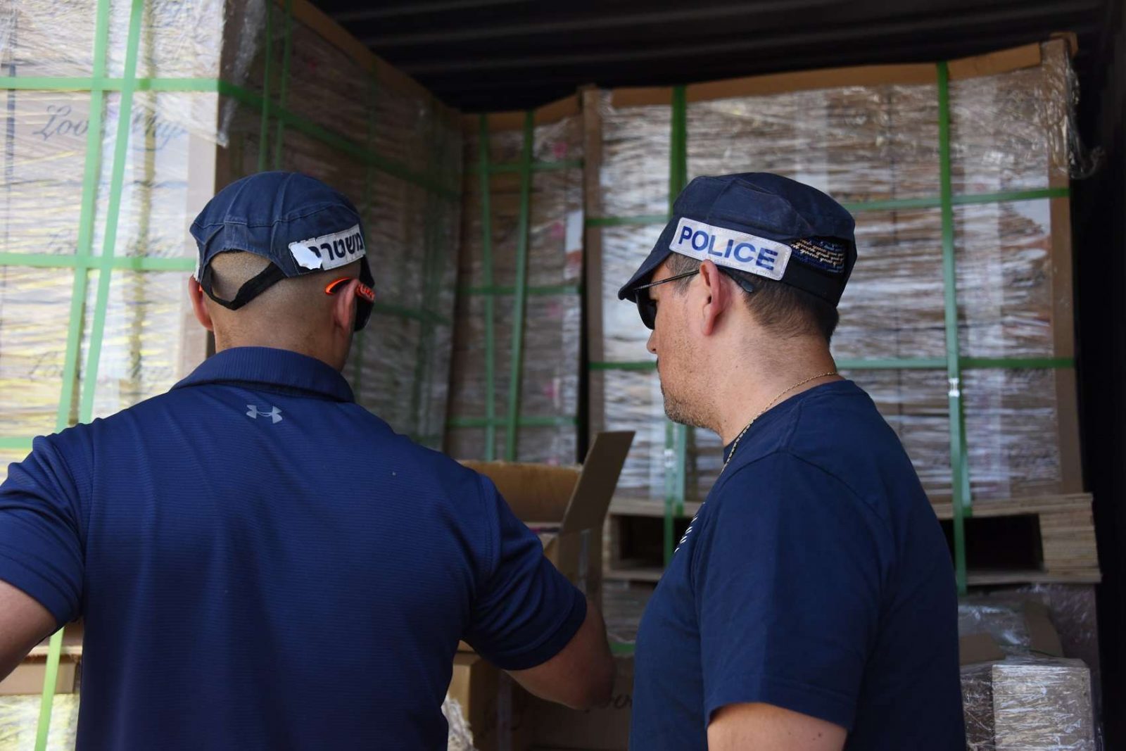 החרמת המכולה ע"י המשטרה ומשרד הבריאות. סירטון וידאו מצורף. צילום: דוברות המשטרה, מחוז חוף