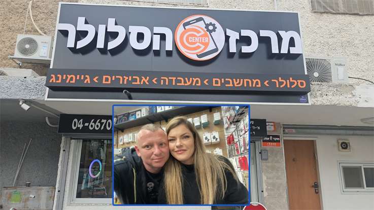 המרכז לסלולר שנפרץ עם הבעלים מקס וקטיה חלפין. צילום: פרטי.