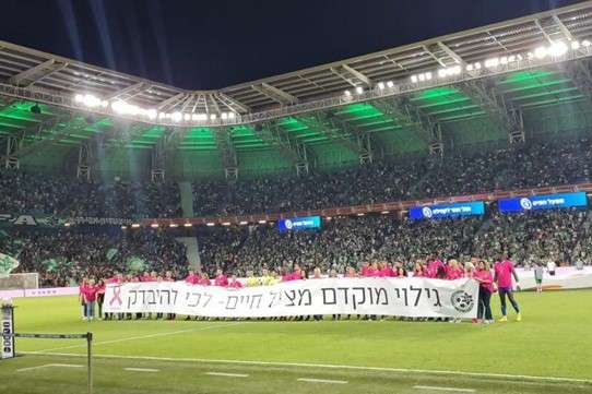 שיתוף פעולה במסר החשוב עם מכבי חיפה. צילום. הכוח הוורוד
