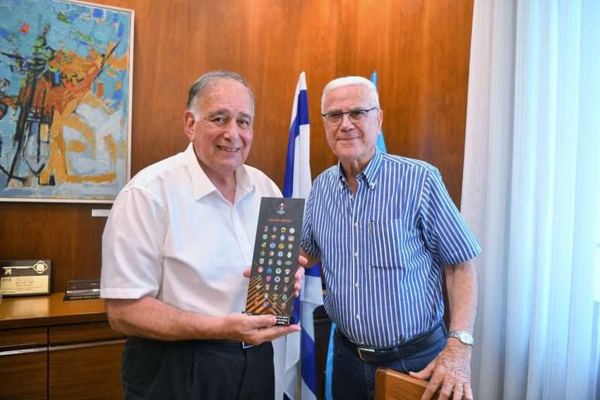 נשיא המועדון יעקב שחר וראש העיר יונה יהב, מיהרו לגנות את האירוע המבזה נשים. צילום ארכיון: ראובן כהן, דוברות עיריית חיפה.