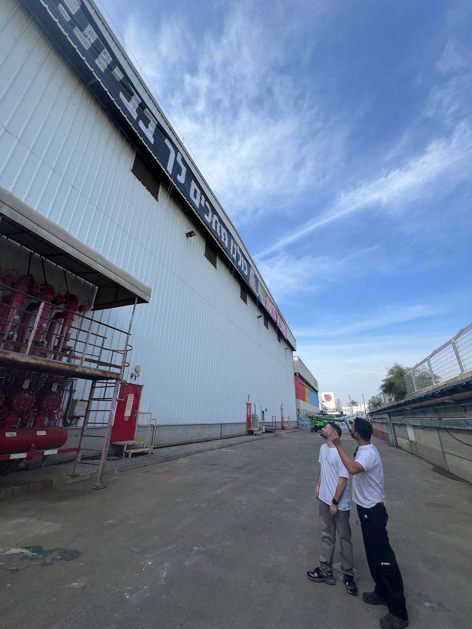 מתן אנגרסט מסיר בעצמו את השלט הענק מגג המפעל. צילום: טמבור.