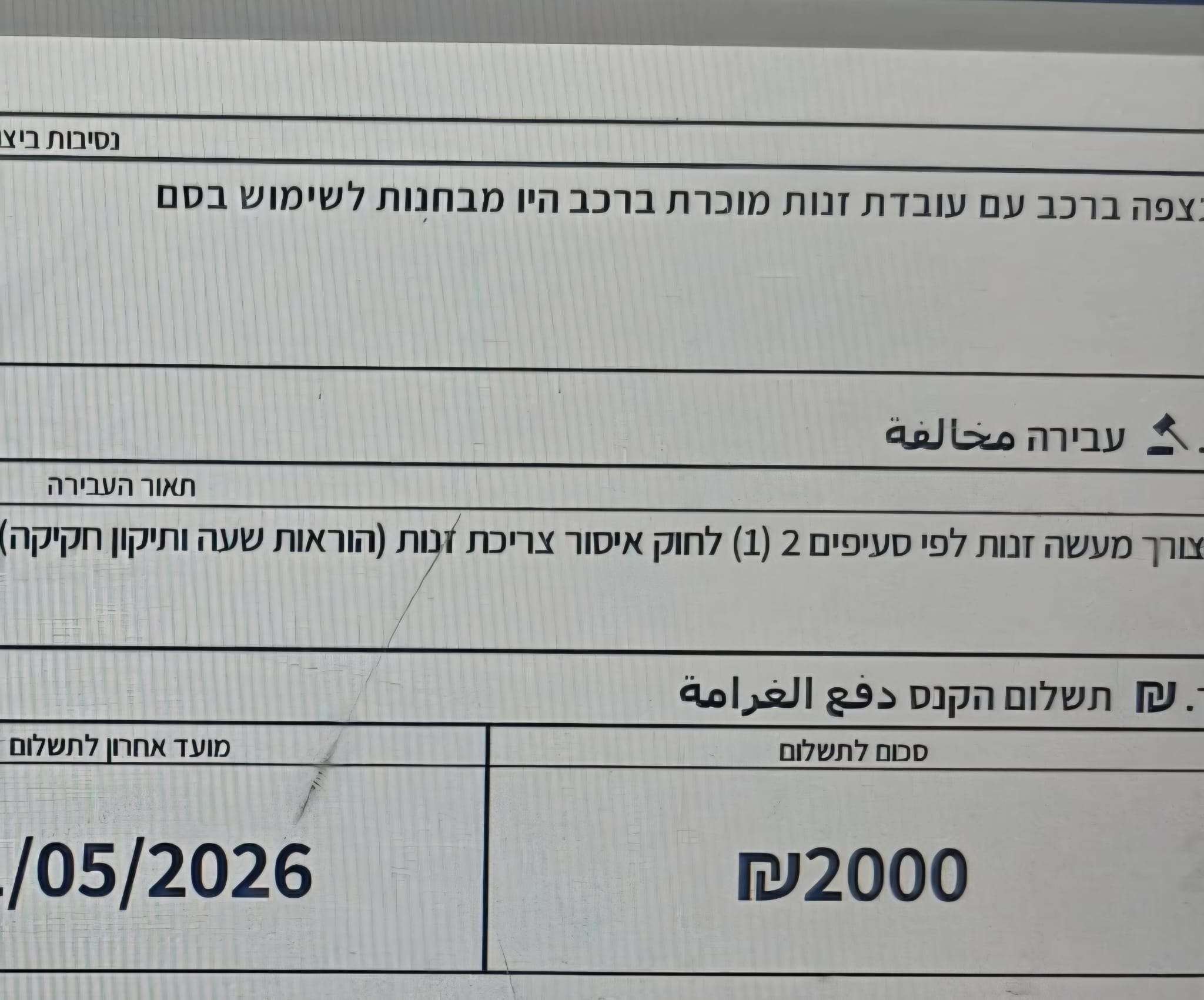 קנס 2000 שקלים על צריכת זנות. צילום: ראובן כהן, דוברות עיריית חיפה.