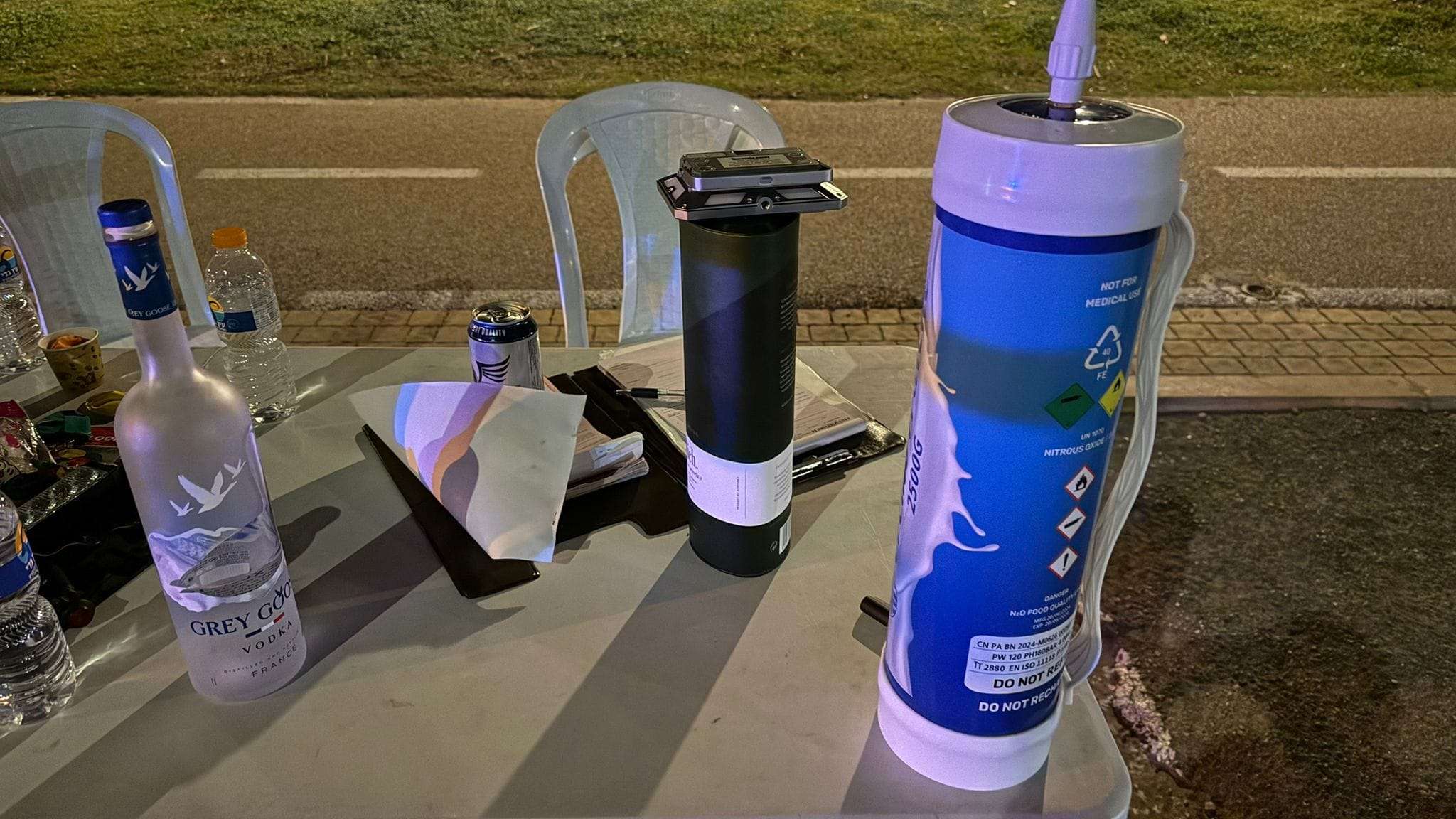 עשרות רבות של בקבוקי אלכוהול הוחרמו ונתפסו, עם עם מכלי גז. צילום: ראובן כהן, דוברות עיריית חיפה.