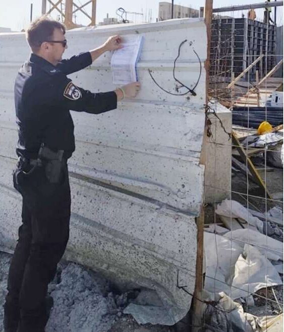 צו סגירה מודבק על אתר הבנייה בקריית ים. צילום: דוברות המשטרה.